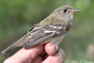 The first "Traill's" Flycatchers of the season were represented by five individuals banded today, two of which keyed out as Alder Flycatcher.